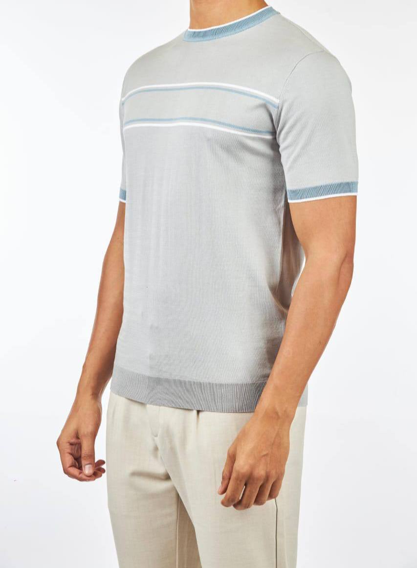 Футболка Zilli LUX-103141 выполнена в классическом стиле, сочетая элегантность и комфорт. Серая футболка с короткими рукавами и контрастными полосками на груди, манжетах и воротнике, подчеркивает изысканный вкус своего обладателя. Идеально подходит для создания стильного образа в повседневной жизни.