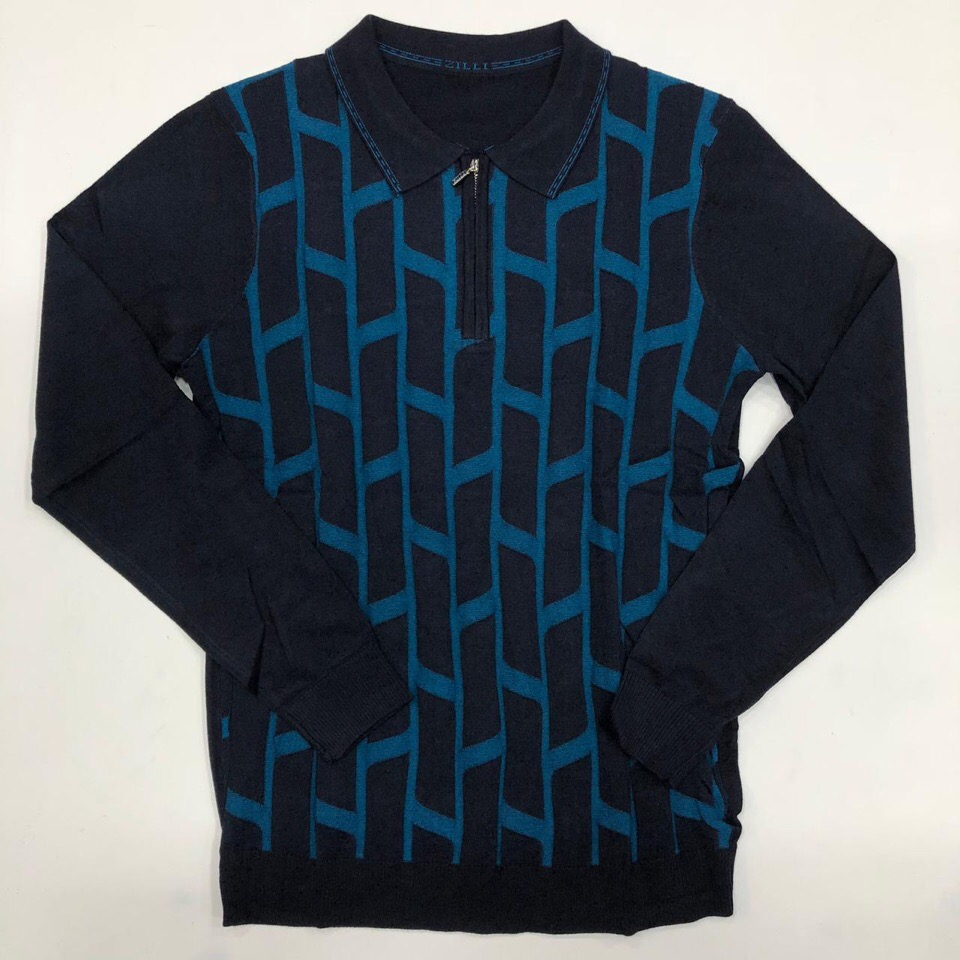 Это стильное мужское поло Zilli ОДМ-400, выполненное в темно-синем цвете с контрастным синим геометрическим принтом. Модель с длинным рукавом и воротником-поло украшена функциональной молнией, придающей образу современный вид. Поло отлично подходит для создания элегантных повседневных и более формальных образов.