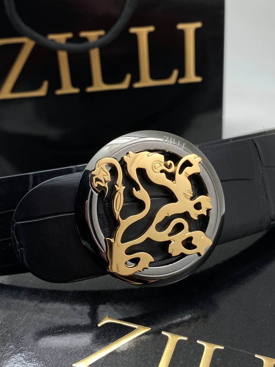 Ремень мужской Zilli LUX-114108 — это стильный аксессуар для мужчин от известного бренда. Черный ремень из материала с текстурой под крокодиловую кожу, дополненный золотистой пряжкой, придаёт образу элегантность. Идеален для повседневного использования и особых случаев.