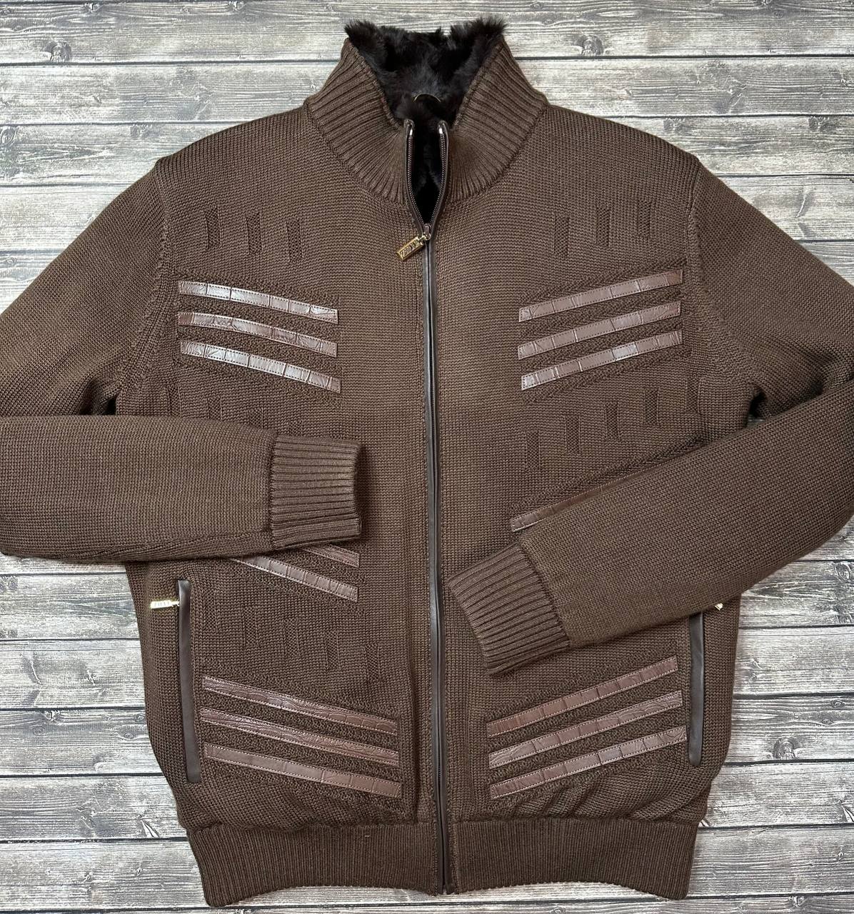 Вязанный кардиган на меху, со вставками из натуральной кожи и кожи крокодила Zilli LUX-82212 – это изысканный предмет гардероба, выполненный в классическом стиле. Кардиган насыщенного коричневого цвета с контрастными вставками из кожи крокодила и натуральной кожи. Модель с меховой подкладкой и удобной молнией, идеально подойдет для создания стильных образов.
