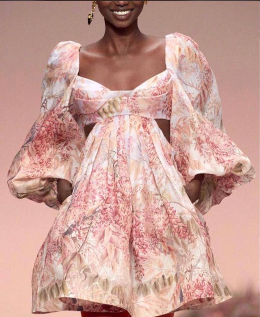Платье Zimmermann LUX-52320 — это изысканное вечернее платье, выполненное в нежном цветочном принте, сочетающем оттенки розового, бежевого и зеленого. Модель отличается объемными рукавами-буфами, открытой спиной и акцентированной талией, что придает образу женственности и элегантности. Это платье идеально подойдет для особых случаев, таких как свадьба, выпускной или торжественный вечер.