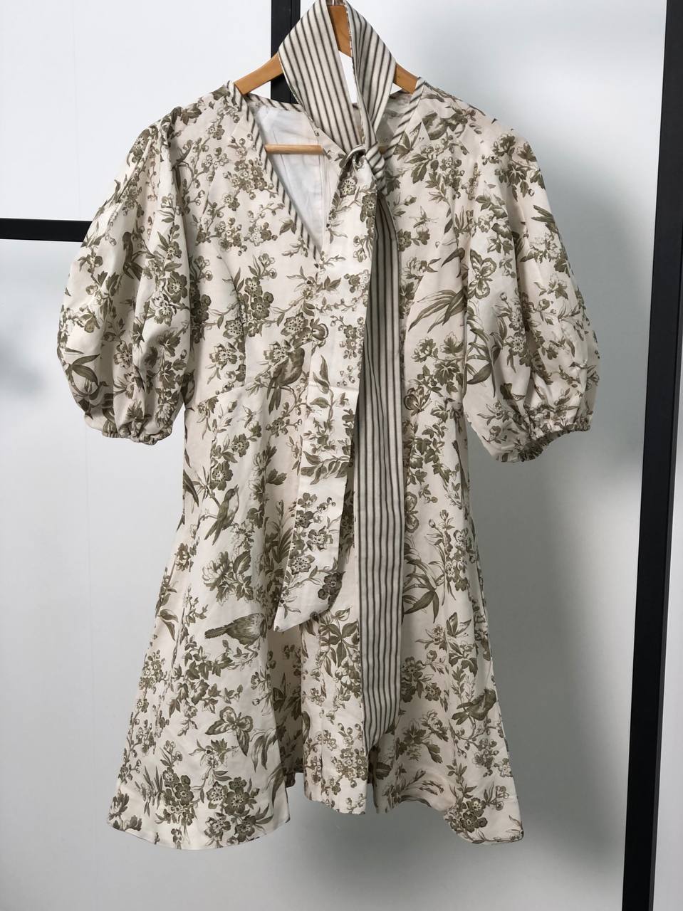 Это очаровательное платье Zimmermann LUX-53097 выполнено в нежном стиле с винтажным цветочным принтом и изображением птиц. Оно идеально подойдет для создания женственных и элегантных образов. Объемные рукава и V-образный вырез добавляют модели изысканности.