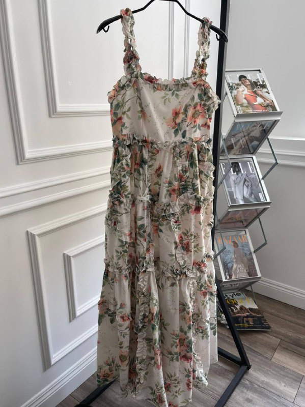 Это легкое платье Zimmermann LUX-53581 с романтичным цветочным принтом идеально подойдет для летних прогулок и торжественных мероприятий. Легкая струящаяся ткань и многоярусный дизайн с оборками создают воздушный и женственный силуэт. Платье выполнено в стиле бохо-шик, что делает его универсальным элементом гардероба.