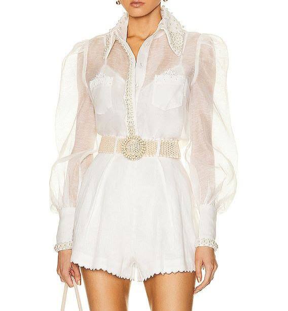Блузка Zimmermann LUX-88947 – это изысканное воплощение женственности и стиля. Прозрачная белая блузка с объемными рукавами, воротником и декоративной отделкой, подчеркивает утонченность образа. Этот предмет гардероба идеально подходит для создания элегантных и запоминающихся образов.