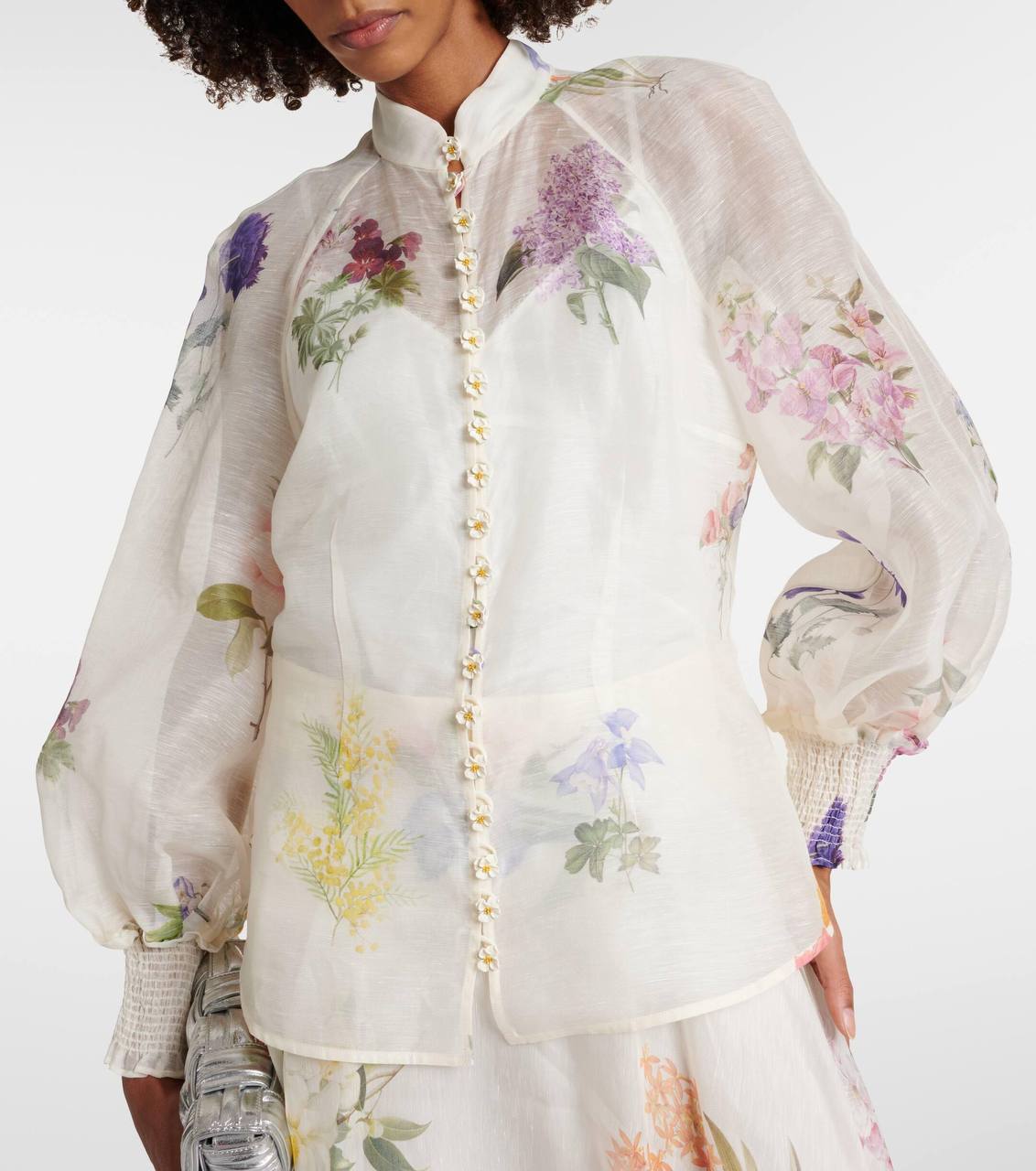 Блузка Zimmermann LUX-104491 - это изысканное воплощение женственности и элегантности. Блузка выполнена в романтическом стиле с цветочным принтом, который придает ей воздушность и легкость. Нежный оттенок белого цвета подчеркивает изящество модели и делает ее идеальной для различных образов.