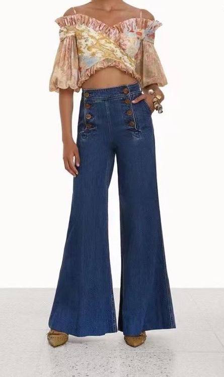 Эти джинсы Zimmermann LUX-67055 – настоящий тренд, сочетающий в себе стиль ретро и современный дизайн. Расклешенный крой и высокая талия с рядом декоративных пуговиц визуально удлиняют ноги и создают элегантный силуэт. Оригинальная отделка и насыщенный синий цвет делают их ярким акцентом любого образа.