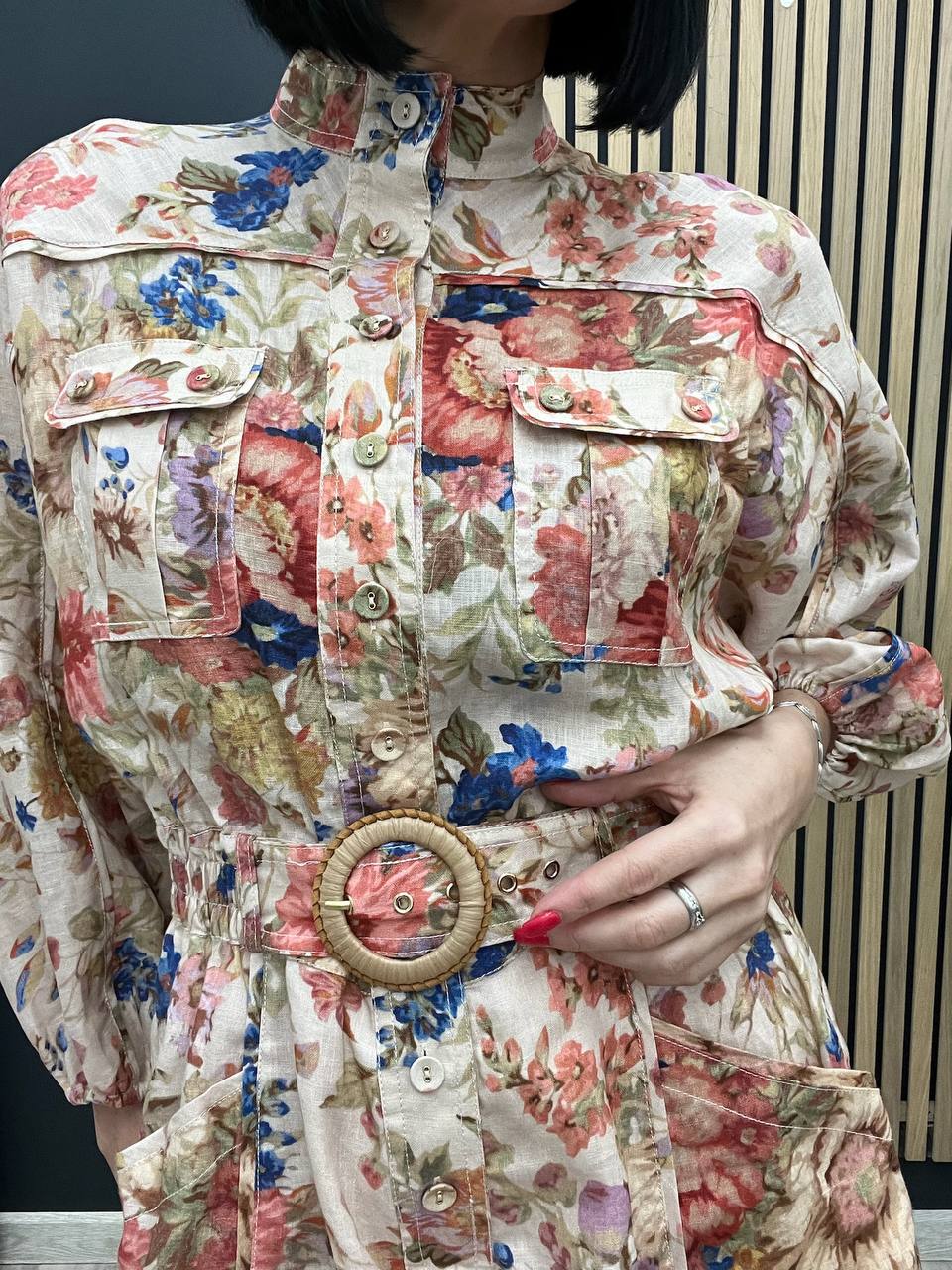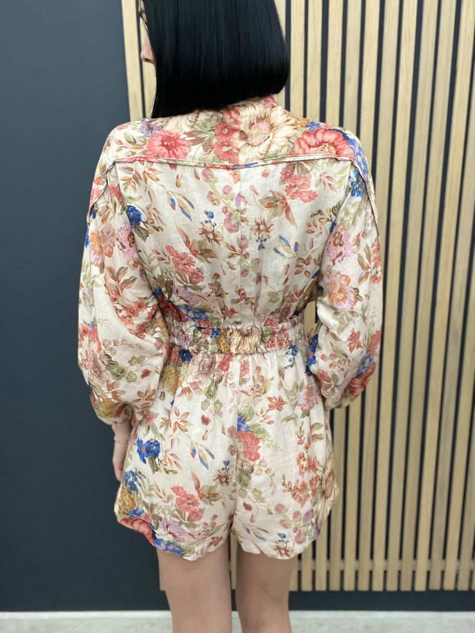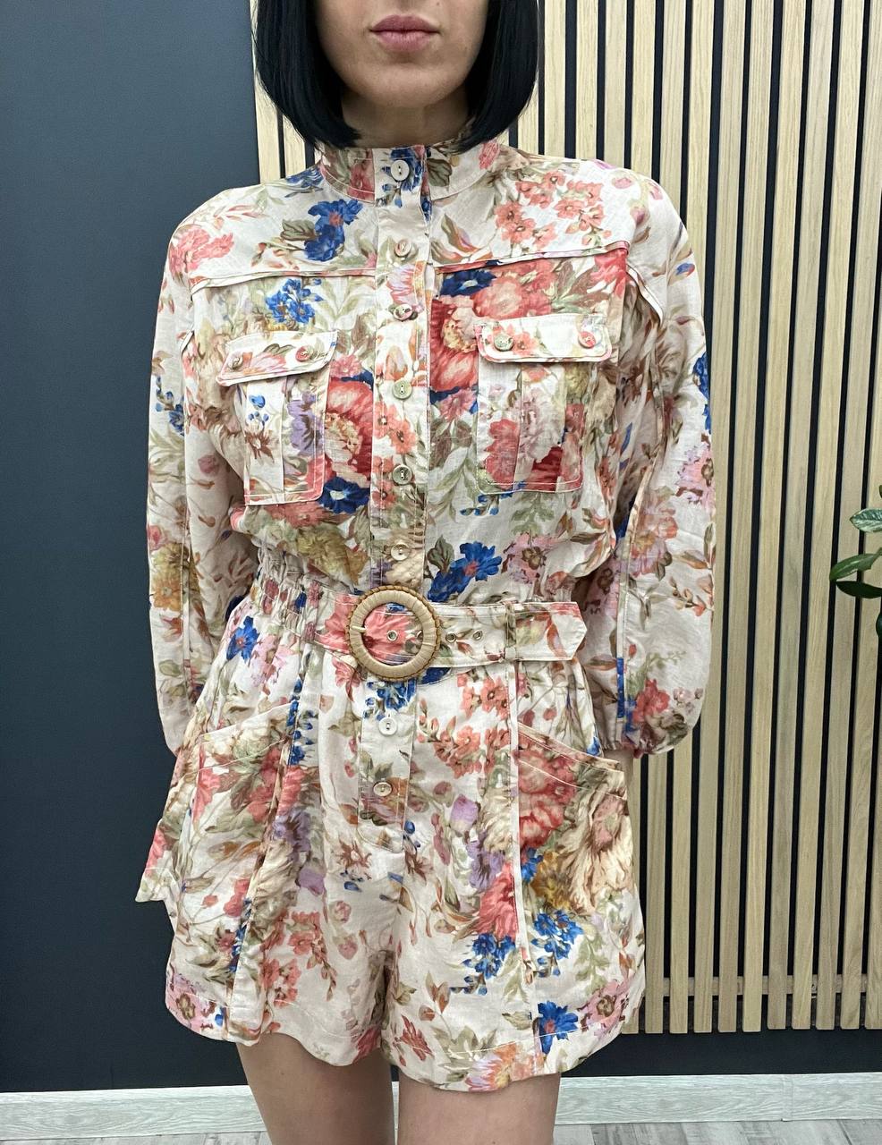 Комбинезон Zimmermann LUX-104579 - это стильный комбинезон в романтическом стиле с цветочным принтом. Комбинезон имеет свободный крой, короткие шорты и длинные рукава. Пояс с пряжкой подчеркивает талию, создавая женственный силуэт.