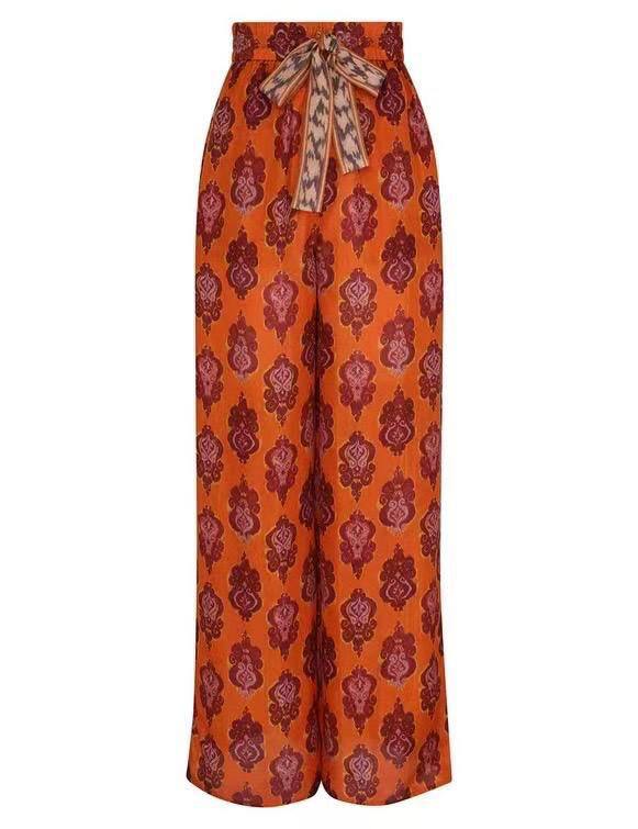 Костюм женский Zimmermann LUX-116636 - это стильный комплект, выполненный в ярком оранжевом цвете с уникальным узором. Комплект включает в себя свободную рубашку с широкими рукавами и брюки палаццо с высокой посадкой. Идеально подходит для создания элегантного и расслабленного образа в летний период.