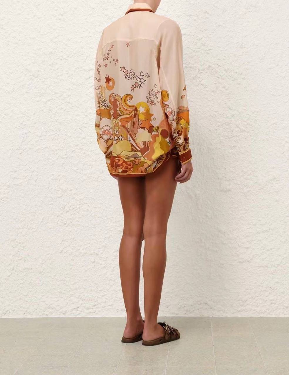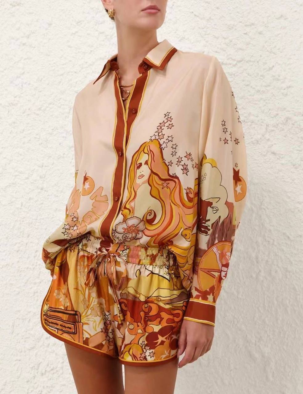 Этот женский костюм от Zimmermann сочетает в себе элегантность и оригинальный дизайн. Комплект состоит из рубашки с длинными рукавами и шорт, украшенных ярким принтом. Идеальный выбор для создания стильного и запоминающегося образа.