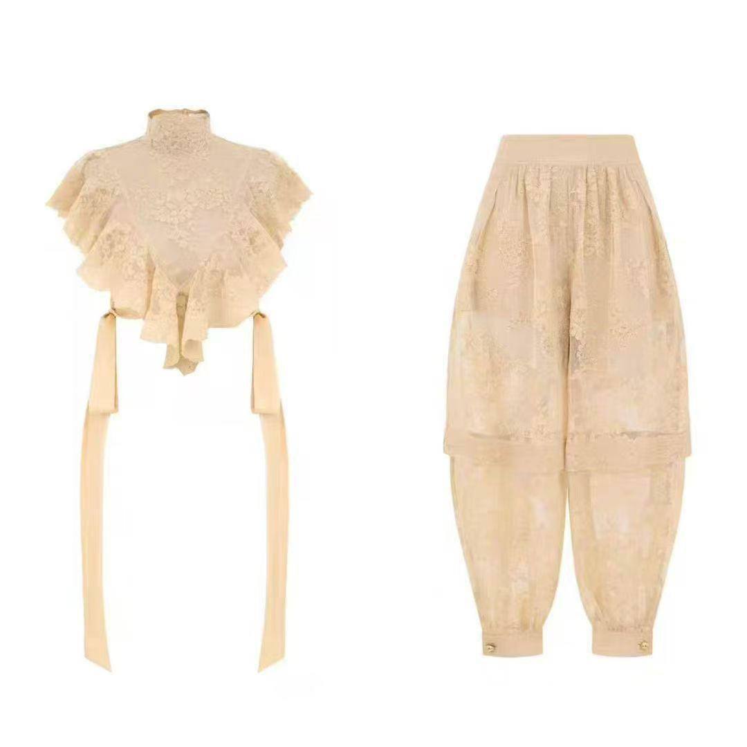 Костюм Zimmermann – это элегантный и женственный наряд, идеально подходящий для создания неповторимого образа. Он отличается изысканным кружевным узором и свободным кроем.