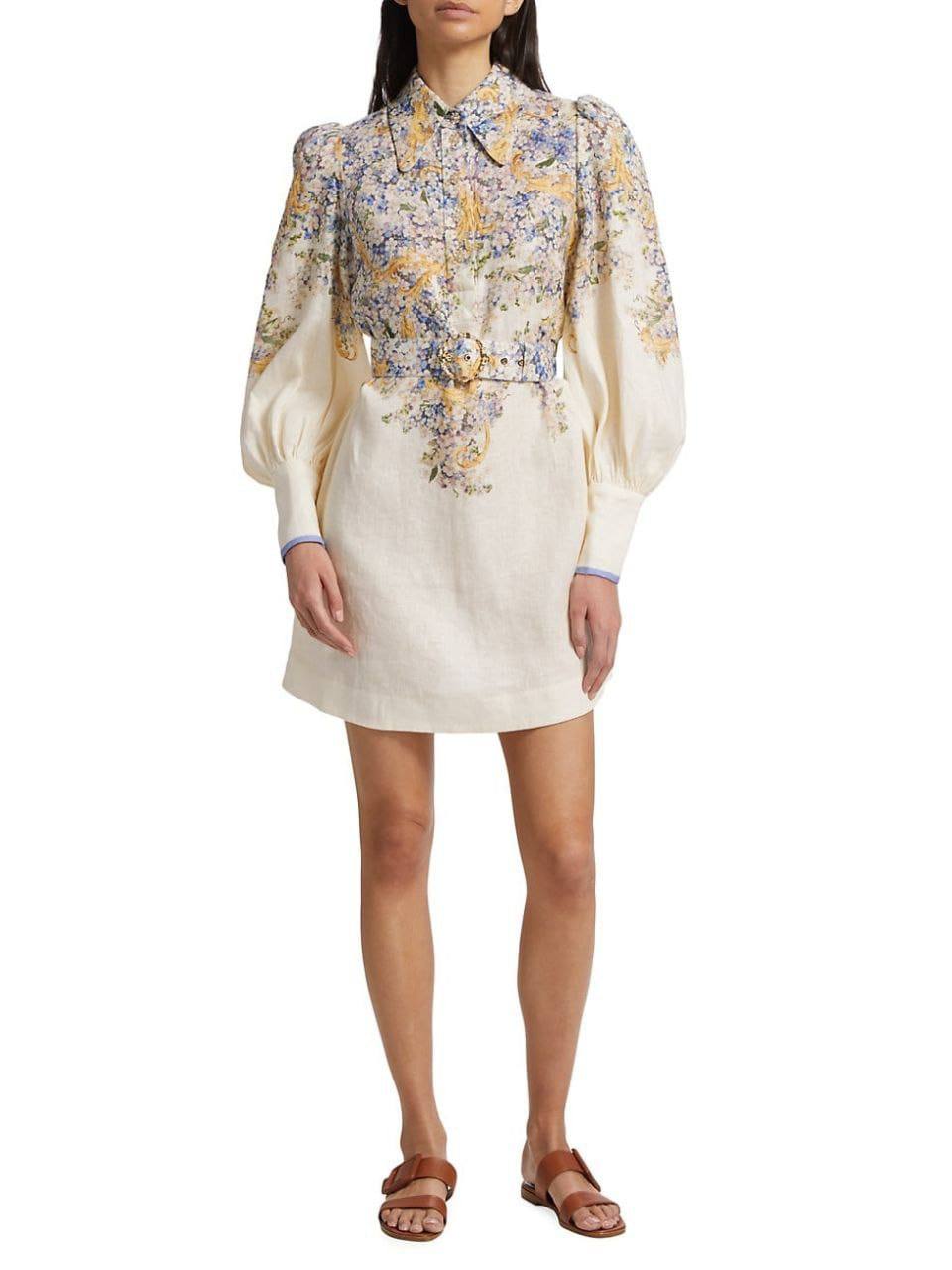 Платье Zimmermann LUX-88718 - это изысканное платье в стиле рубашки с цветочным принтом. Основной цвет - кремовый, дополненный яркими акцентами на рукавах и воротнике. Идеально подходит для создания элегантного и неповторимого образа.