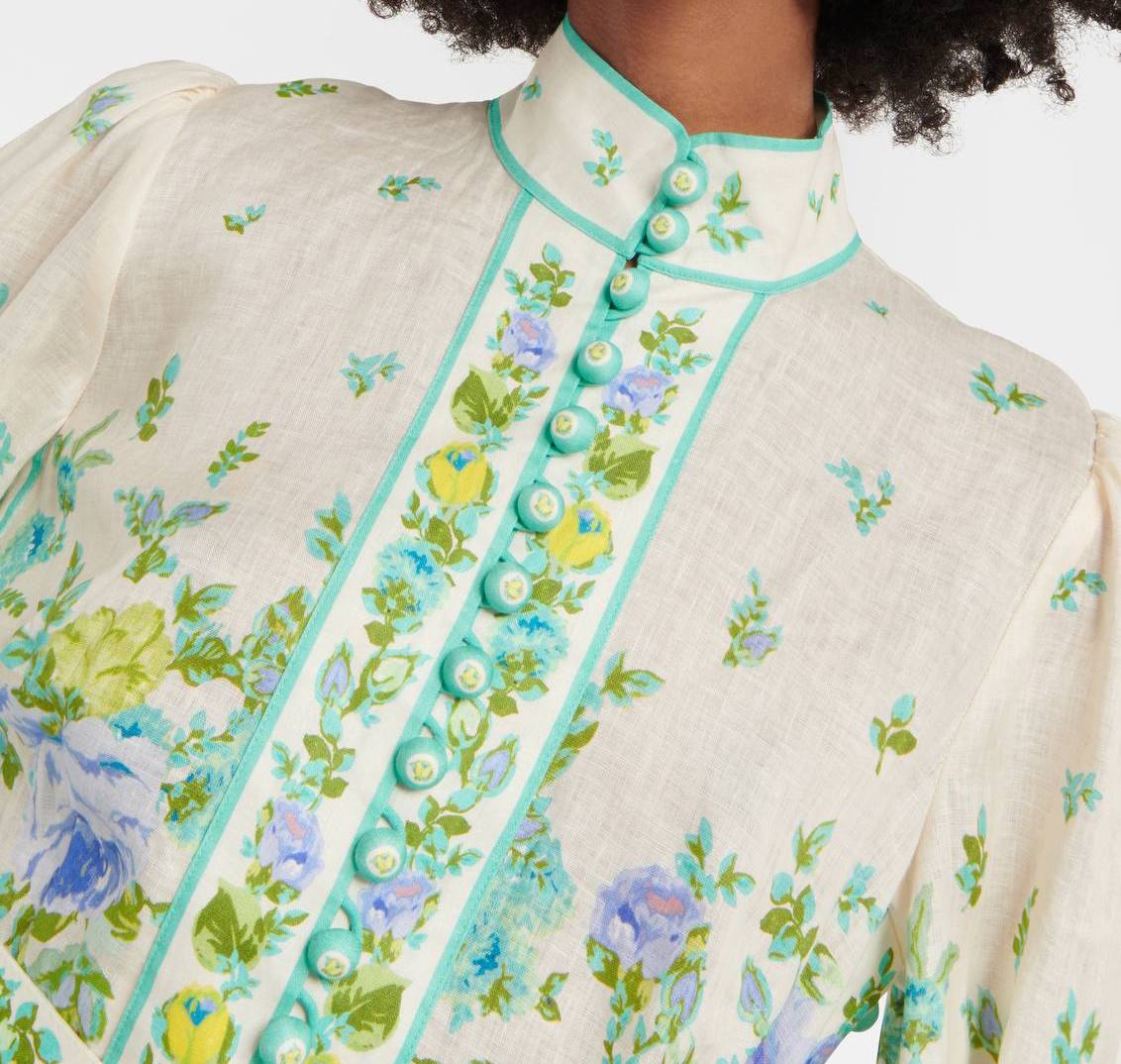 Платье Zimmermann LUX-92773 – это элегантное платье с цветочным принтом. Оно выполнено в романтичном стиле, имеет длину мини, акцентирующую талию. Белый фон с голубыми цветами придает платью легкость и свежесть, делая его идеальным для летних образов.