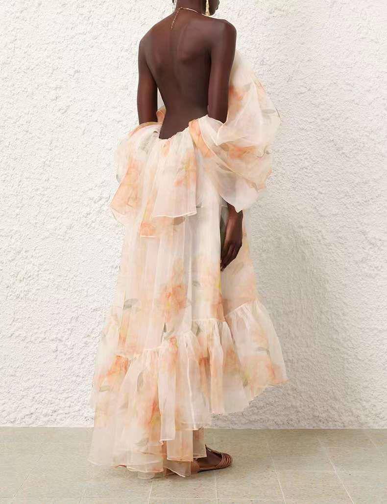 Платье Zimmermann LUX-105499 - это воздушное платье, созданное для особенных случаев. Бело-оранжевое платье выполнено в романтичном стиле с легкой, полупрозрачной текстурой. Оно идеально подойдет для торжественных мероприятий или летних прогулок.