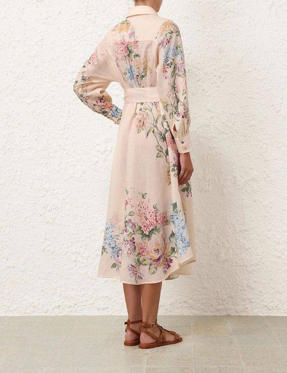 Платье Zimmermann LUX-107546 – это элегантное платье-рубашка миди с цветочным принтом. Бежевый оттенок ткани дополнен яркими цветочными узорами, создавая нежный и женственный образ. Идеально подойдет для летних прогулок или вечерних мероприятий.