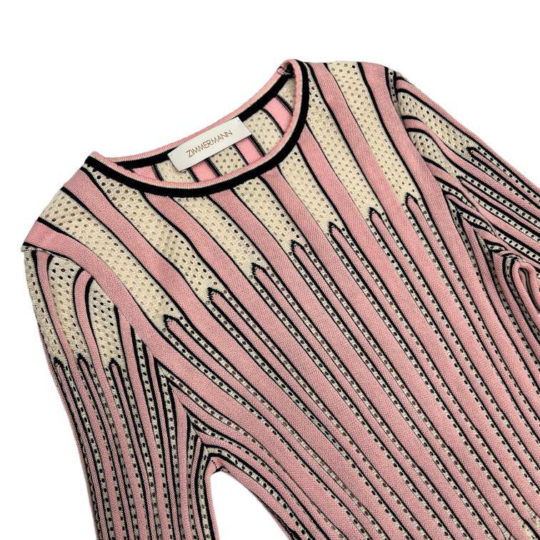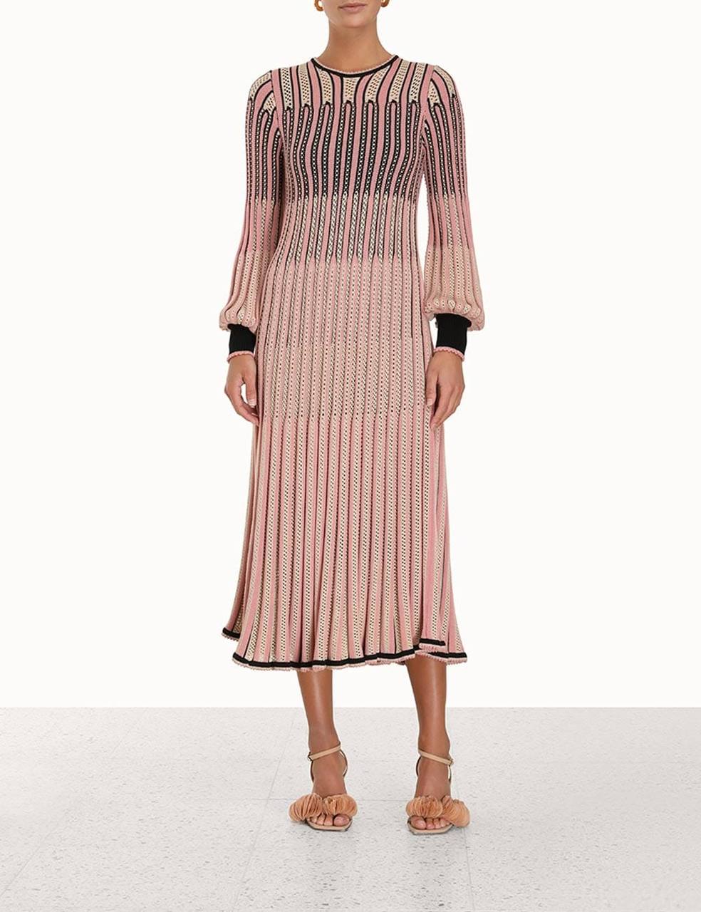 Платье Zimmermann LUX-97560 представляет собой изысканное изделие в элегантном стиле. Нежно-розовый цвет платья дополнен черными и бежевыми акцентами, создавая утонченный и привлекательный образ. Текстура ткани визуально интересна благодаря полосатому узору, который добавляет динамики и глубины. Платье идеально подойдет для различных торжественных мероприятий.