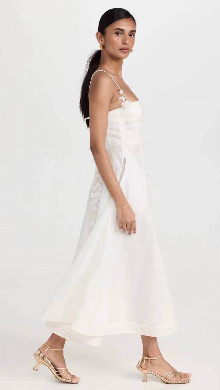 Платье Zimmermann LUX-116635 — это элегантное белое платье миди, выполненное в романтическом стиле. Оно обладает воздушной текстурой, лифом-корсетом и тонкими бретелями, украшенными декоративными элементами. Такое платье идеально подойдет для создания изысканного образа на торжественном мероприятии или вечерней прогулке.