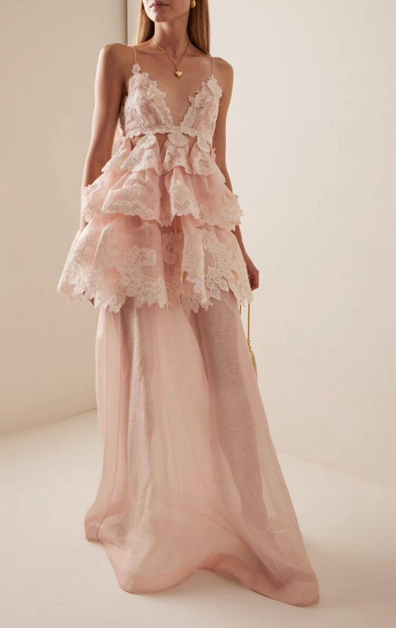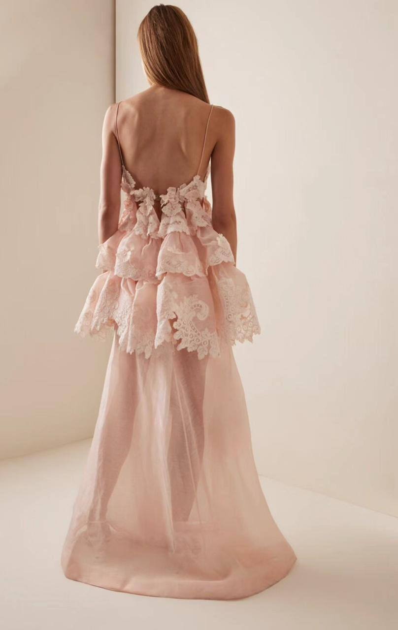 Платье Zimmermann LUX-118780 - это изысканное платье, созданное в романтическом стиле. Нежно-розовый цвет и воздушный силуэт делают его идеальным выбором для особых случаев и вечерних выходов. Платье отличается уникальным дизайном с многоярусными деталями и кружевными вставками.