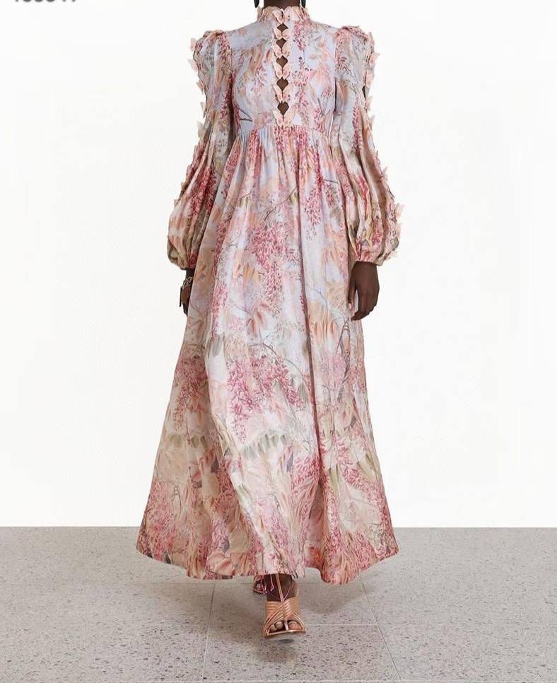 Платье Zimmermann LUX-67040 – это изысканное длинное платье с цветочным принтом, выполненное в романтическом стиле. Модель отличается женственным силуэтом, объемными рукавами и акцентом на талии. Деликатный цветочный узор и изящные детали делают это платье идеальным выбором для особых случаев, создавая утонченный и элегантный образ.