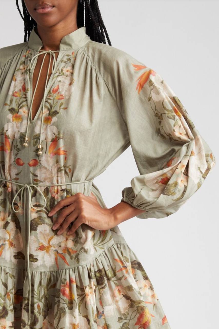 Платье Zimmermann LUX-101770 - это изысканное платье в стиле бохо. Нежное платье мятного цвета с цветочным принтом, рукавами фонариками и кокетливым вырезом. Идеально подходит для создания романтичного образа на каждый день или для особого случая.