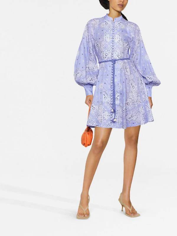 Платье Zimmermann Plate (артикул LUX-71390) — это изысканное платье с утонченным дизайном. Платье выполнено в нежно-лиловом цвете с принтом пейсли, что придает ему элегантность и женственность. Оно имеет расклешенный крой, длинные рукава и пояс, подчеркивающий талию.