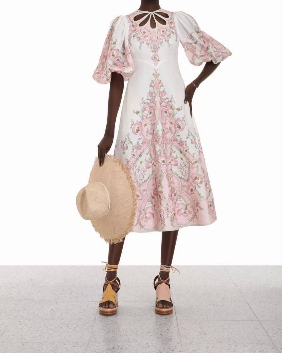 Платье Zimmermann LUX-72923 – это воплощение элегантности и изысканности. Платье выполнено в романтичном стиле, с пышными рукавами и изящным вырезом на груди, украшено нежным розовым цветочным принтом на белом фоне. Идеально подойдет для создания утонченного и женственного образа.