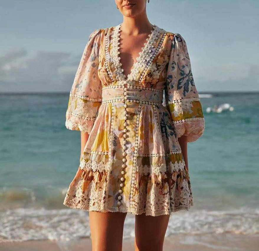 Платье Zimmermann LUX-113670 – это элегантное и женственное платье с цветочным принтом, выполненное в нежных пастельных тонах. Платье имеет А-силуэт, рукава три четверти с небольшим объемом и глубокий V-образный вырез, подчеркивающий элегантность. Кружевные детали добавляют романтичности образу.