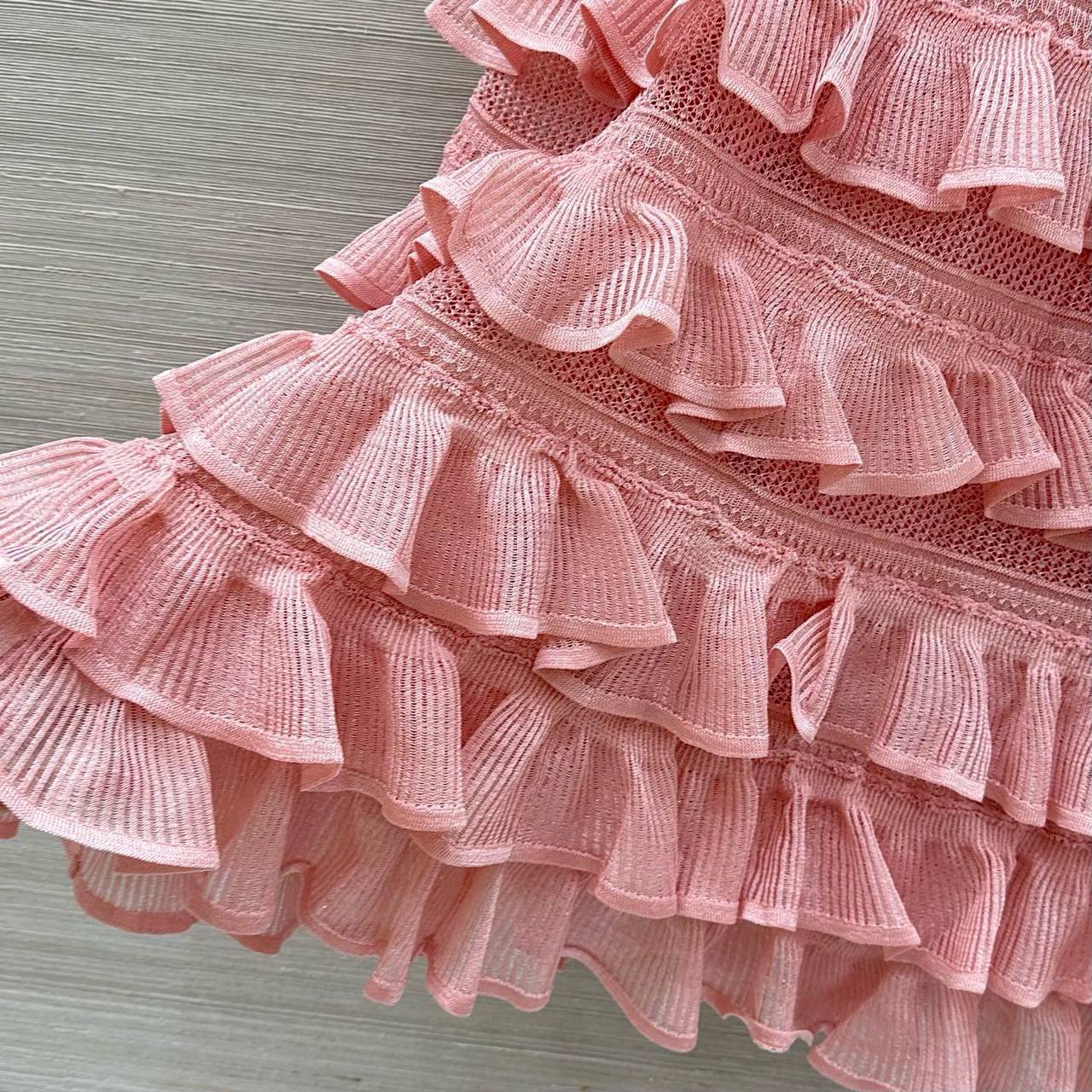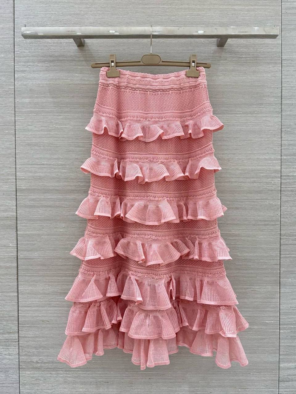 Юбка Zimmermann – воплощение женственности и утонченного стиля. Изделие выполнено в нежном розовом цвете и украшено игривыми оборками, создающими романтичный и воздушный образ.