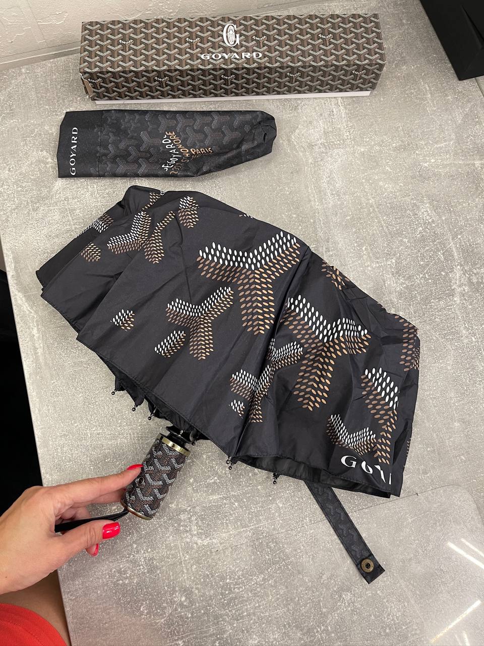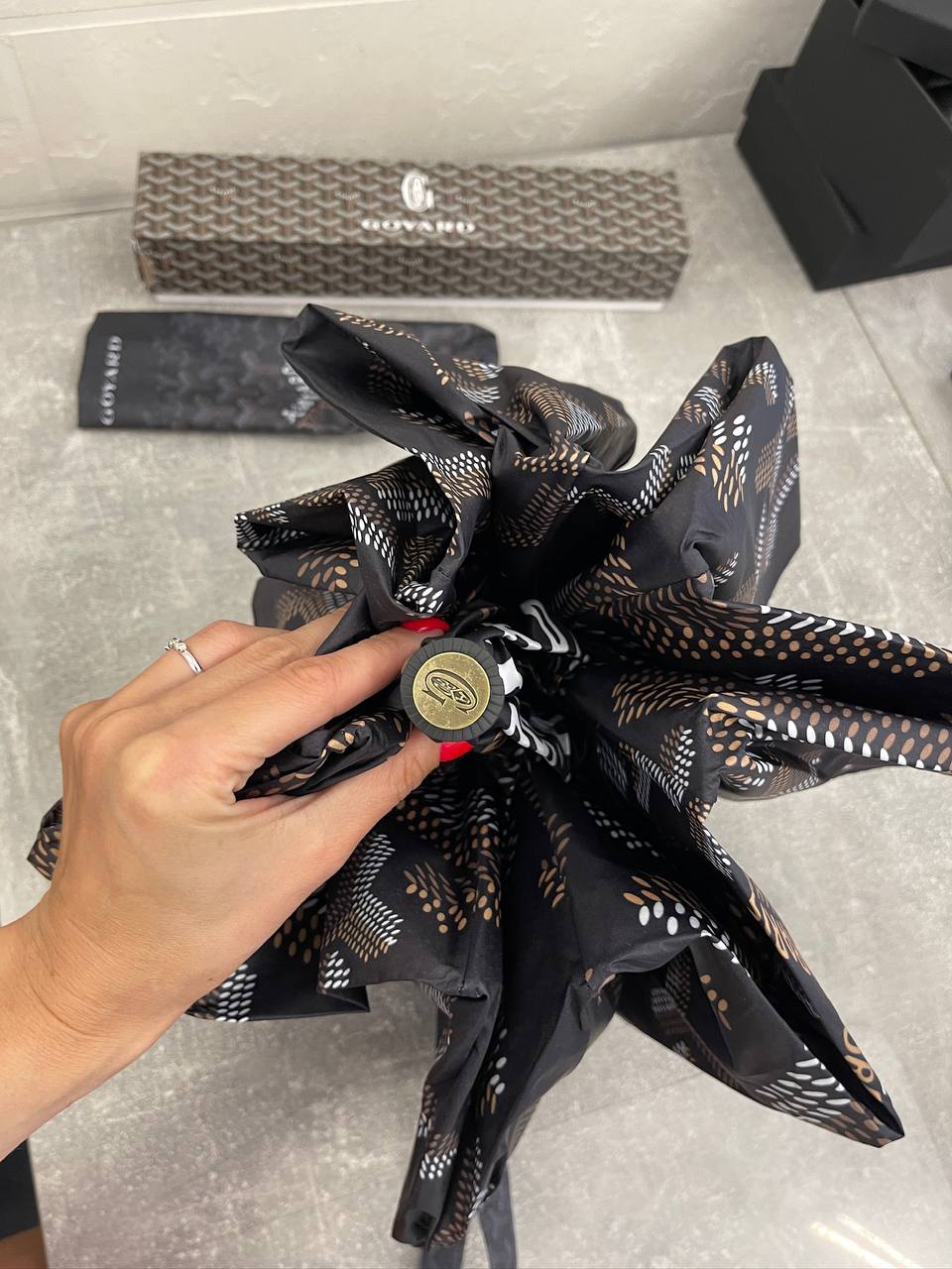 Зонт Goyard LUX-108219 - это стильный аксессуар от известного бренда. Он выполнен в классическом стиле, сочетает элегантность и функциональность. Зонт представлен в черном цвете с узнаваемым узором, что делает его заметным и привлекательным.